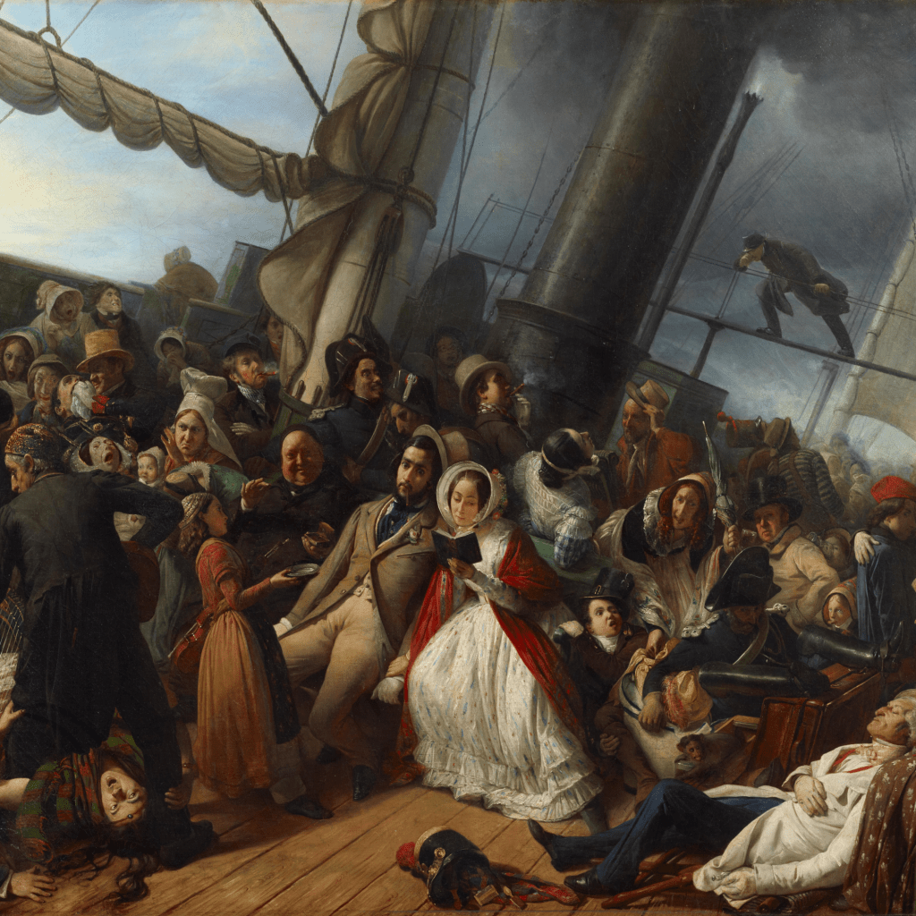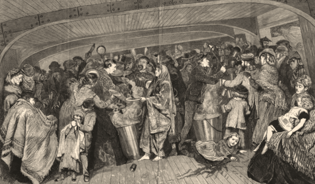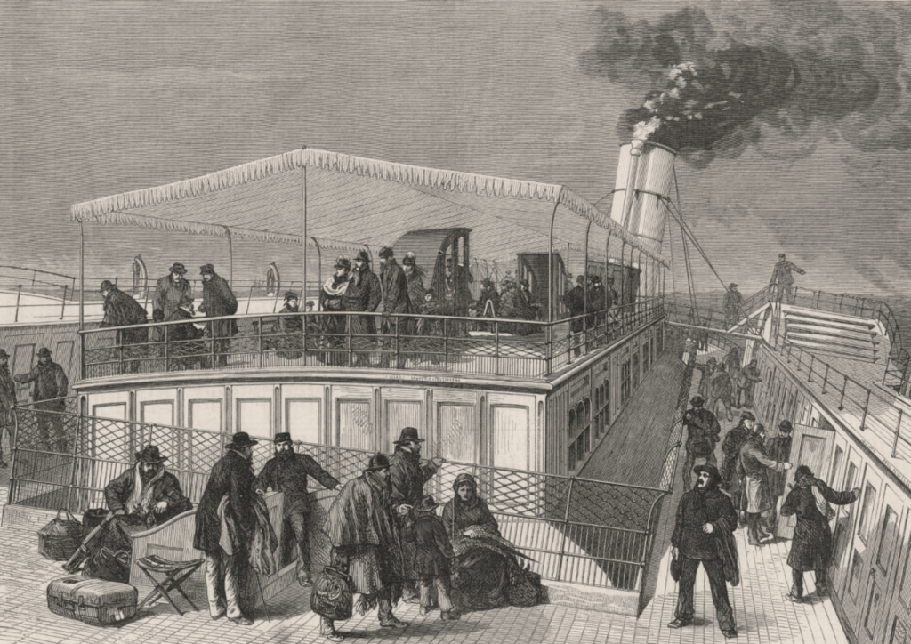Les conditions de vie sont déjà désastreuses du temps du transport à la voile pour les migrants européens prenant place en masse au début du XIXe siècle sur les navires à destination des Etats-Unis puis de l’Amérique du Sud ou de l’Australie, et qui ne sont pas habitués aux voyages en mer. Les passagers s’entassent en grand nombre dans des entreponts exigus pour rentabiliser le trajet, dans des logements souvent malsains ou qui le sont rendus par les conditions de la traversée. Par forte mer, les écoutilles constituant la seule ventilation sont fermées et le mal de mer dont sont victimes les migrants ne fait qu’empirer l’insalubrité des ponts surchargés où règnent vite le typhus et la dysenterie. Cette situation sanitaire préoccupante conduira les Etats-Unis à légiférer à travers le Steerage Act du 2 mars 1819 pour tenter d’améliorer les conditions du voyage transatlantique : on ne doit pas embarquer plus de deux passagers pour 5 tonnes de poids du navire, et l’on doit disposer d’un minimum de 60 gallons d’eau et de 100 livres de biscuit sain par passager. Des amendes sévères sont prévues pour les navires contrevenants, mais ces dispositions ne s’appliquent qu’aux bâtiment battant pavillon américain ou quittant les ports des Etats-Unis, et non à ceux venant d’Europe. La portée de cette réglementation reste donc très limitée…