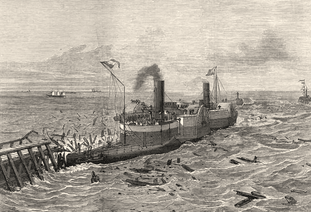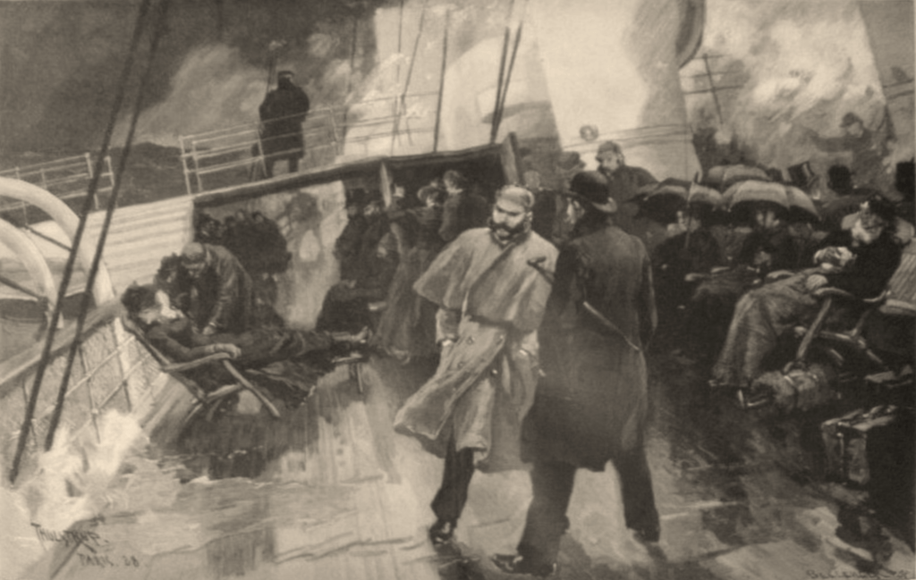 Les choses ne vont faire qu’empirer avec l’introduction progressive de la vapeur, grande innovation du XIXe siècle. Quelques décennies seulement après les premières expérimentations de ce nouveau mode de propulsion, on lance les premiers navires à vapeur militaires puis de transport civil. Les paquebots à vapeur vont révolutionner le monde des transports maritimes. Ce sera d’abord pour de courts trajets comme la traversée de la Manche de Calais à Douvres ou de Dieppe à Brighton, puis la vapeur devient à partir des années 1850 une alternative intéressante pour les plus longues croisières, jusqu’en Australie. Mais demeure un problème de taille : la mauvaise tenue à la mer de ces navires. On ne bénéficie plus sur un bâtiment à vapeur de l’effet salvateur de la voilure, préservant encore quelque peu l’estomac des passagers.