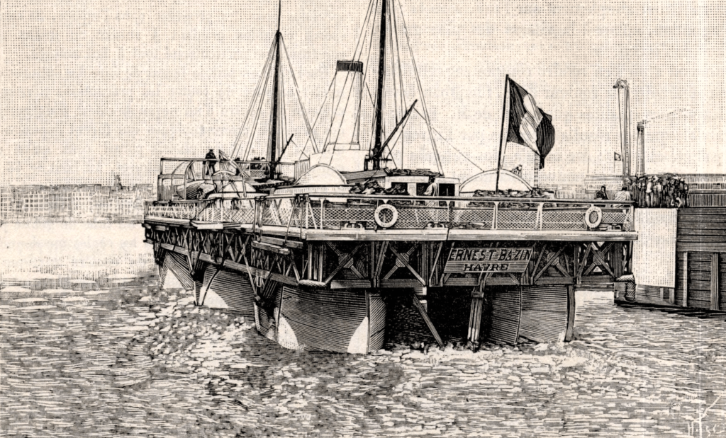 Lancé sur la Seine le 19 août 1896, le navire débute ses essais au Havre en 1897 sous les yeux intrigués du public et de la presse tant française que britannique. L’équipage se montre enthousiaste, vantant les qualités nautiques du navire : « la stabilité a été si absolue que nous aurions pu facilement faire une partie de billard sur le pont sans être gênés ». La suite des essais contredira ces affirmations hâtives : le bâtiment est moins stable par mer formée, les flotteurs sont trop immergés pour garantir une marche efficace et le navire est bien peu manœuvrant. On devrait faire appel à deux reprises à un remorqueur pour venir en aide au curieux bâtiment, qui s’avère être un nouvel échec après les tentatives de Dicey et Bessemer.