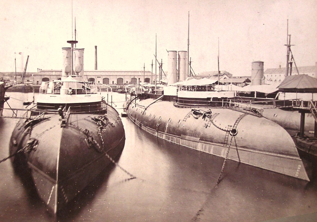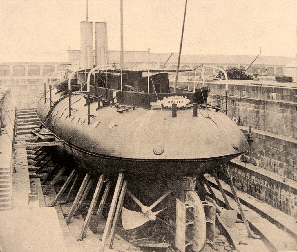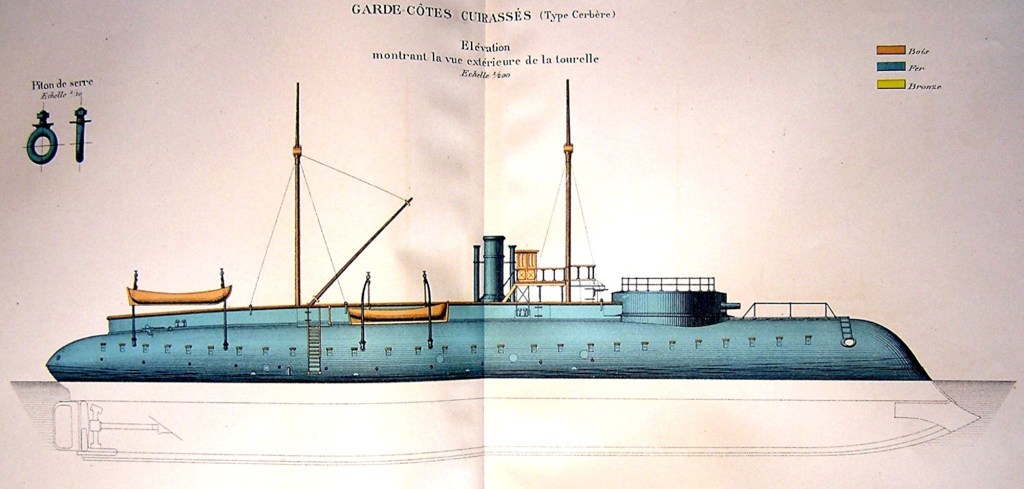 Les dernières années du Second Empire virent l’introduction de curieux bâtiments à éperon, construits sur une structure de bois, et presque totalement dépourvus de superstructures et de gréement. Ces bâtiments, inspirés des monitors américains, présentent un aspect qui n’est pas sans évoquer nos modernes sous-marins d’attaque. Mais leurs missions et leur armement étaient bien différents.