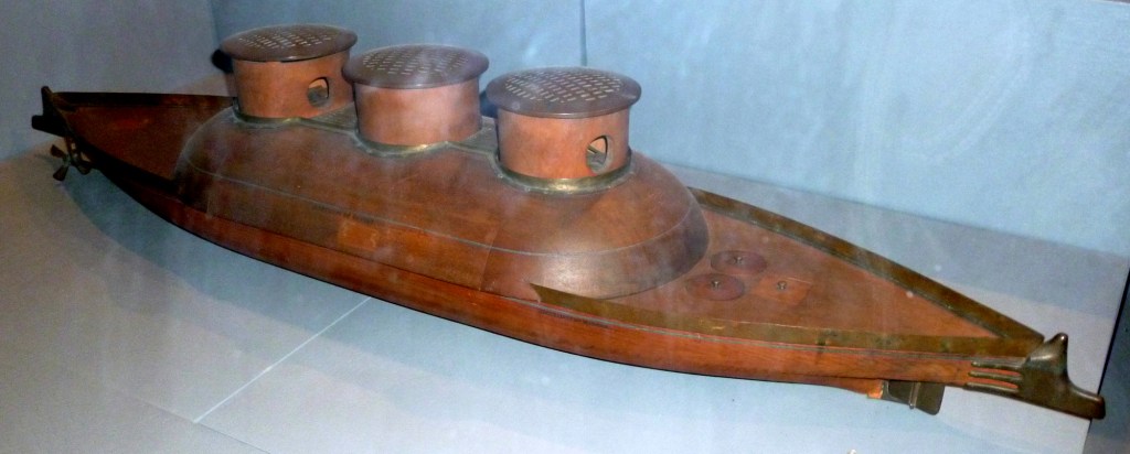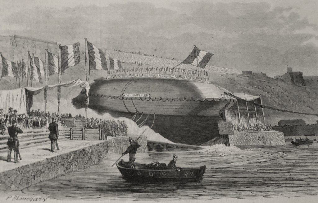 Certains projets étaient très classiques, notamment celui de l’ingénieur Legrand, qui proposait un bâtiment amphidrome, semi submersible, surmonté d’une tourelle mobile armée de 21 canons ! A la même époque, d’autres propositions furent élaborées, qui n’atteignirent pas le conseil des constructions, mais ces projets témoignent du bouillonnement d’idées originales qui caractérise cette période charnière de la construction navale française.