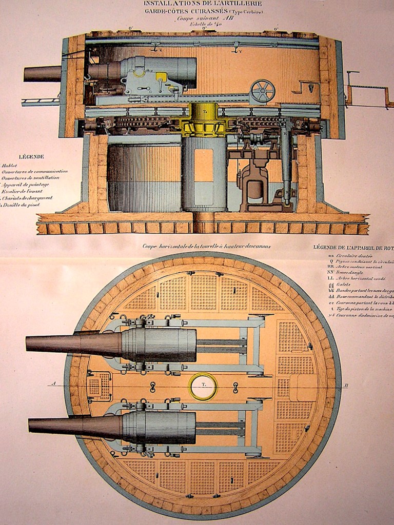 Ce foisonnement d’idées, n’échappa pas à l’attention de Dupuy de Lôme, alors directeur des constructions navales. A la demande du ministre Chasseloup-Laubat, il réalisa une synthèse des différentes propositions qui avaient été présentées. Ce travail aboutit à un projet dont les plans furent acceptés par le Ministre : ils devaient servir à la construction d’une « batterie à hélice et à tour pour la défense des rades » baptisée le Taureau, qui fut mise sur cale à Toulon en septembre 1863.