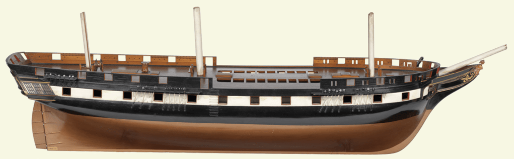 Lancée le 21 janvier 1834, la HMS Pique est une frégate de 5ème rang portant 36 canons, construite au chantier de Devonport (Plymouth). Elle est conçue au début des années 1830 par sir William Symonds (1782-1856), qui officie alors en qualité de « Chief Surveyor of the Navy », à la tête de l’institution en charge de l’établissement des plans des futurs navires de la Royal Navy.
