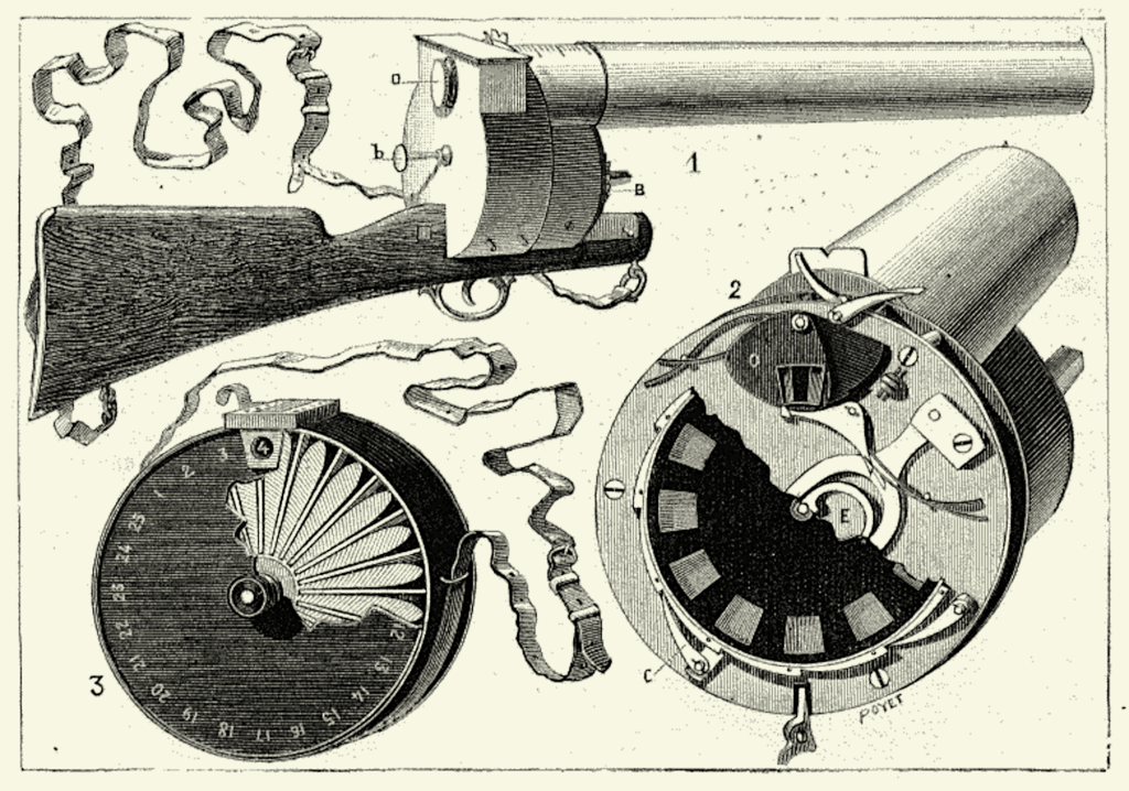 A l’aide de ce fusil photographique, Marey réalise notamment deux très courtes séquences en bord de mer en 1891. « La vague » et « barques sur la mer » sont à notre connaissance les premières apparitions de la mer dans le pré-cinéma. Chaque prise de vue ne restitue qu’une à deux secondes de film, le fusil photographique n’étant pas en mesure de prendre plus de 25 images à la fois. L’intérêt reste plus scientifique qu’artistique, et Marey ne dispose pas encore de moyens de projection adaptés.