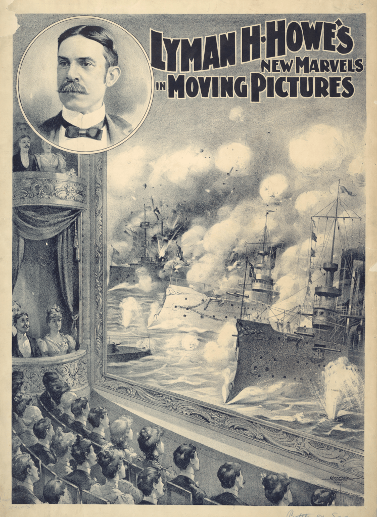 Edward Hill Amet (1860-1948) propose quant à lui une astucieuse reconstitution du bombardement de Matanzas à Cuba avec l’utilisation de navires miniatures. Le film ne nous est malheureusement pas parvenu. Pas davantage que les projections de Lyman Hakes Howe (1856-1923) pour lesquelles nous disposons toutefois d’une affiche annonçant un spectacle grandiose !