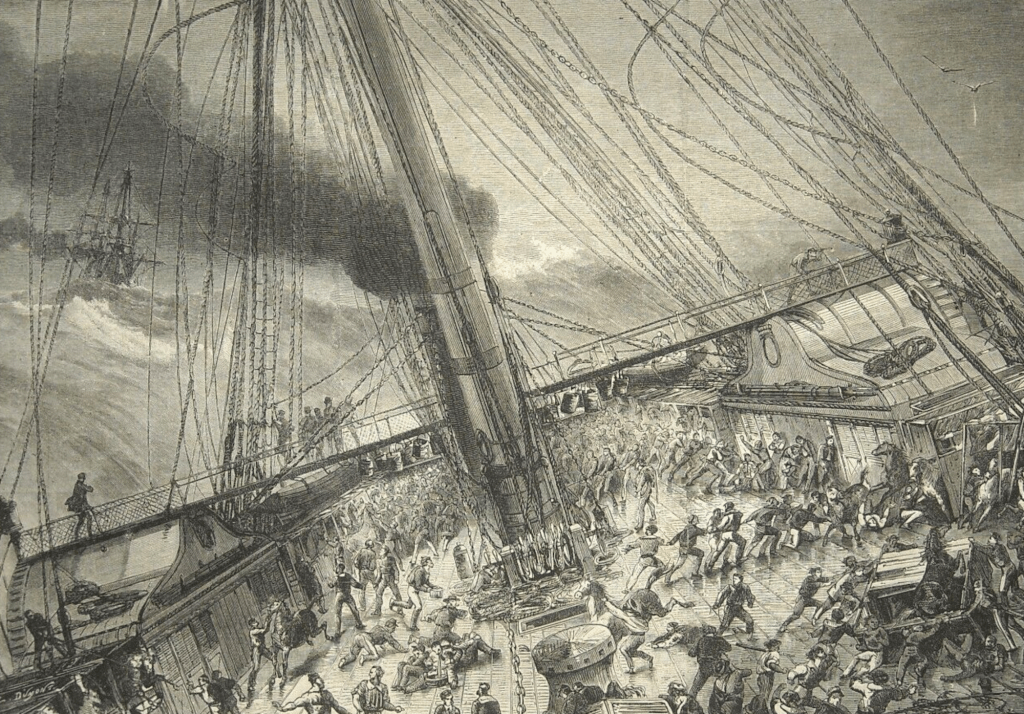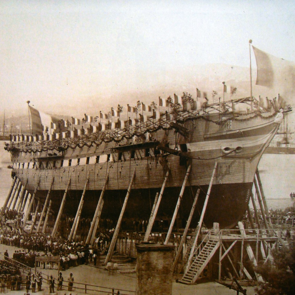 […] (1903-2005) à partir de la magnifique photographie que nous avions choisi en couverture de notre article sur les frégates. Mise sur chantier en 1847, la Thémis est allongée sur cale avant son lancement afin de recevoir […]