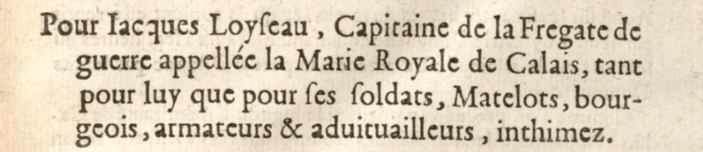 On trouve à la même époque la trace d’autres navires de guerre formellement désignés comme frégates dans le Nord de la France. En 1645 le commandement de la « frégate de guerre » Marie Royale est confié au « capitaine de frégate » Jacques Loyseau. Il est également fait mention d’une « frégate équipée en guerre » commandée par le Capitaine Radre de Dunkerque.