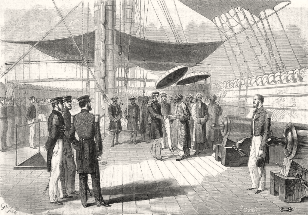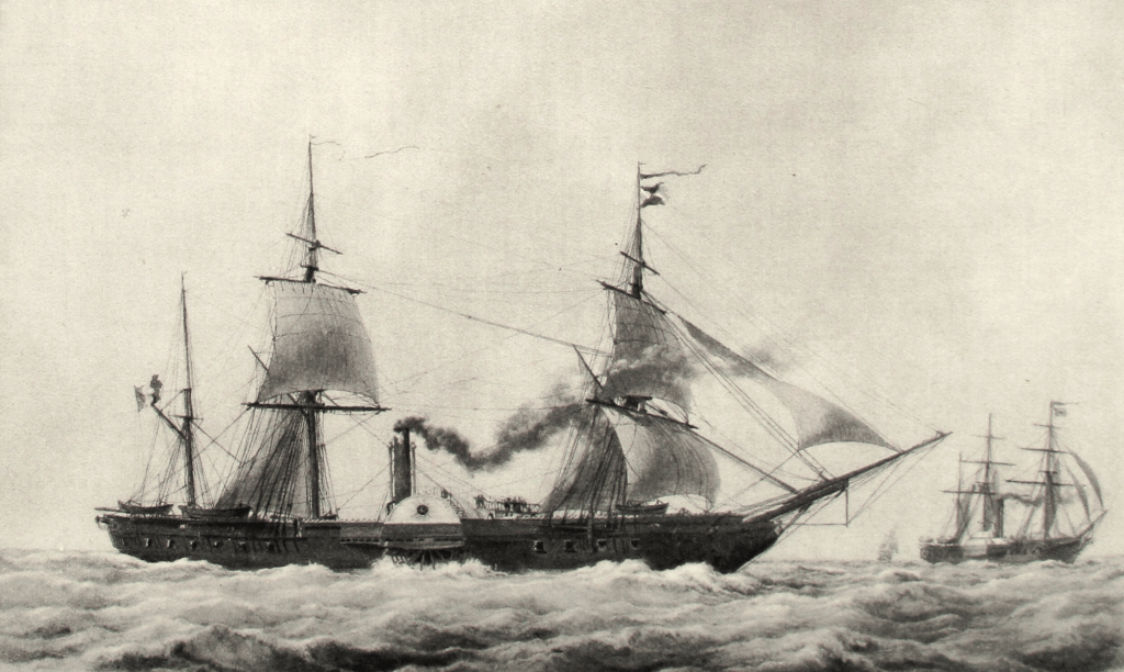 La frégate à voiles a vécu. Mais la frégate mixte, toujours pourvue d’un gréement classique de trois-mâts, n’est pas encore menacée. Elle reste l’instrument privilégié pour la guerre la course : nul besoin de cuirasse pour lutter contre le commerce adverse, et sa voilure reste un avantage certain pour assurer un long rayon d’action. En effet, la vapeur est un mode de propulsion encore incertain dans des stations navales lointaines où l’approvisionnement en charbon n’est pas assuré.