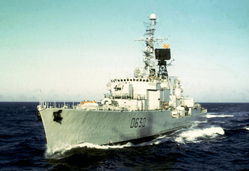 Après-guerre, les désignations OTAN des bâtiments de surface suivent la logique anglo-saxonne : les bâtiments d’escorte de plus fort tonnage sont classés Destroyers, leur numéro de coque étant précédé de la lettre D, tandis que les navires plus légers à vocation anti-sous-marine sont classés Frigates, leur identifiant étant précédé de la lettre F.