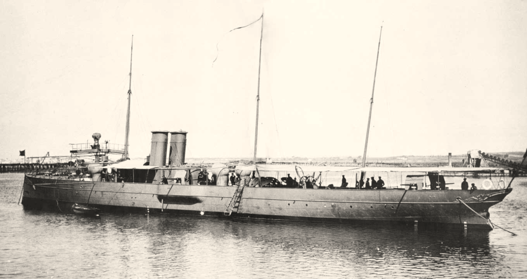 Il va falloir chercher ailleurs pour retrouver cet héritage. Le cuirassé n’est pas le seul à avoir fait son apparition au XIXème siècle. Une autre invention, plus discrète, va avoir des conséquences autrement plus durables sur la tactique navale : la torpille. Avant de renvoyer au projectile propulsé que l’on entend aujourd’hui sous cette appellation, la torpille désigne d’abord tous types d’explosifs navals qui ne sont pas mis en œuvre par l’artillerie : d’abord les torpilles dormantes, que l’on appellerait aujourd’hui mines navales, qui servent à la défense passive des arsenaux. Puis les torpilles portées au bout d’un espar par des embarcations à vapeur, qui font une démonstration éclatante de leur efficacité au cours de la guerre de Sécession puis en Chine dans la flotte de l’amiral Courbet.