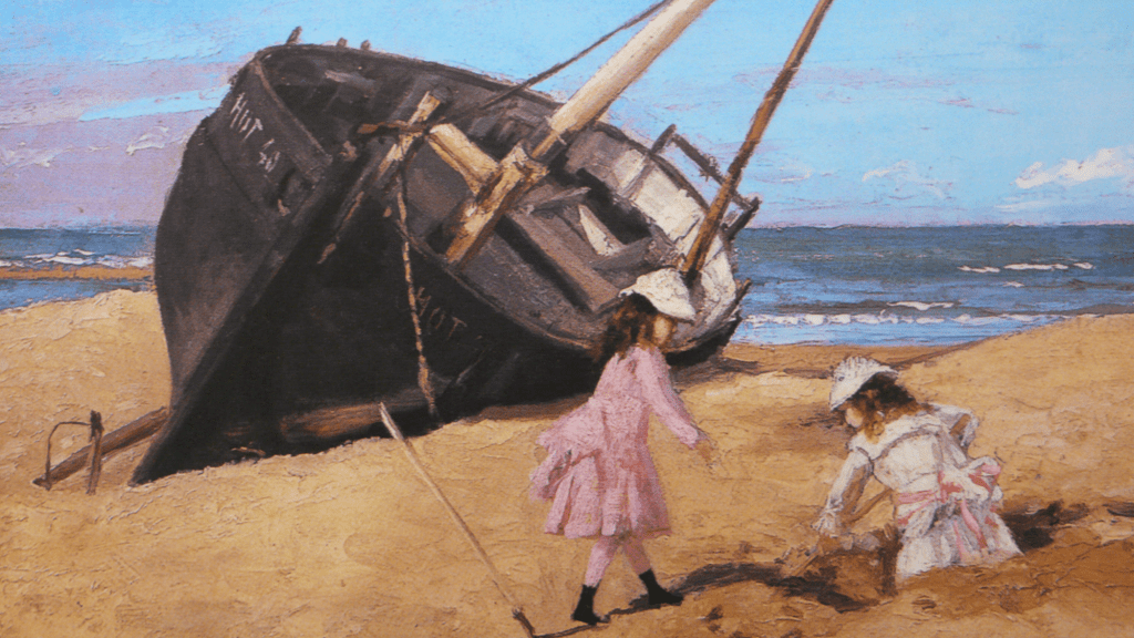 Également, sur un tableau peint par Carolus-Duran (1837-1917), Plage de Trouville en 1875, on voit une coque échouée sur la plage et portant l’immatriculation HOT 40.