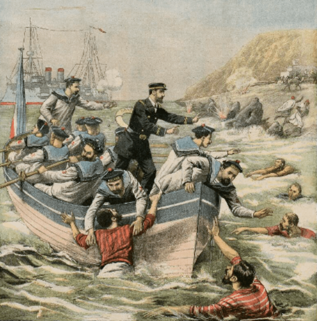 Ludovic Naudeau est accueilli avec courtoisie à bord du croiseur par le capitaine de frégate Jaurès. Le journaliste, qui avait projeté de négocier avec les ravisseurs, promet finalement à l’officier de ne pas intervenir. Un autre plan est à l’étude. Si les maures ne permettent pas de communication directe avec les prisonniers, ces derniers jouissent d’une certaine liberté, l’immensité désertique des lieux rendant impossible toute évasion. Cette situation permet de faire passer des messages, et l’on entend en tirer profit pour tenter un coup de main. Une promenade opportune des prisonniers sur la plage doit permettre à un détachement du croiseur de les secourir. Contrairement à ce que montre les illustrations d’époque, enjolivant la scène, il semblerait que le sauvetage ait eu lieu sans violence, peut-être une rançon a-t-elle finalement été payée aux geôliers.