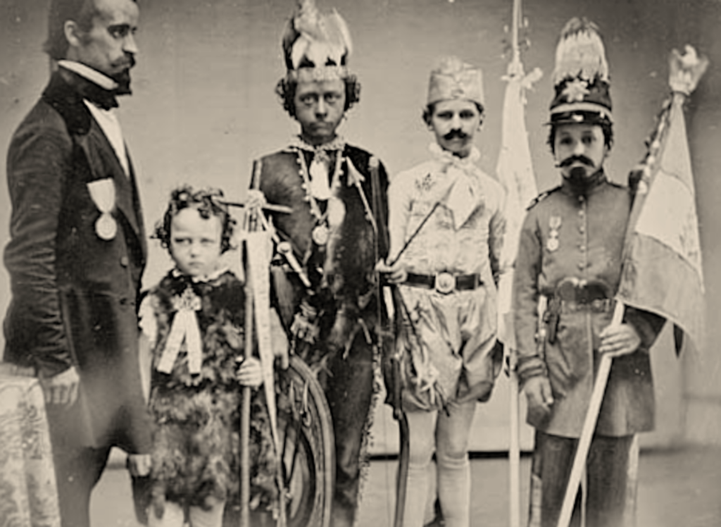 70 hommes de la compagnie de débarquement de la Capricieuse participent à l’événement. Pour la première fois depuis un siècle un détachement français défile en armes dans les rues de Québec, aux côtés des unités britanniques. Les sociétés civiles canadiennes portent les drapeaux célébrant les victoires alliées en Crimée, portant les noms d’Alma, Balaklava et Inkerman. Mail nul drapeau ne saurait égaler en prestige la bannière de Carillon, étendard qui aurait flotté lors de la bataille de Fort Carillon (actuel fort Ticonderoga), victoire des troupes de Montcalm en 1758, et n’a été redécouverte en 1848. Les cris de Vive Napoléon ! et Vive la Reine Victoria ! saluent cette bien curieuse procession. Un rare daguerréotype célébrant l’événement est remis au capitaine de vaisseau Belvèze. Il représente quatre enfants de Québec costumés, l’un représentant Saint Jean-Baptiste, les autres un chef indigène, l’explorateur Jacques Cartier et un Canadien français.