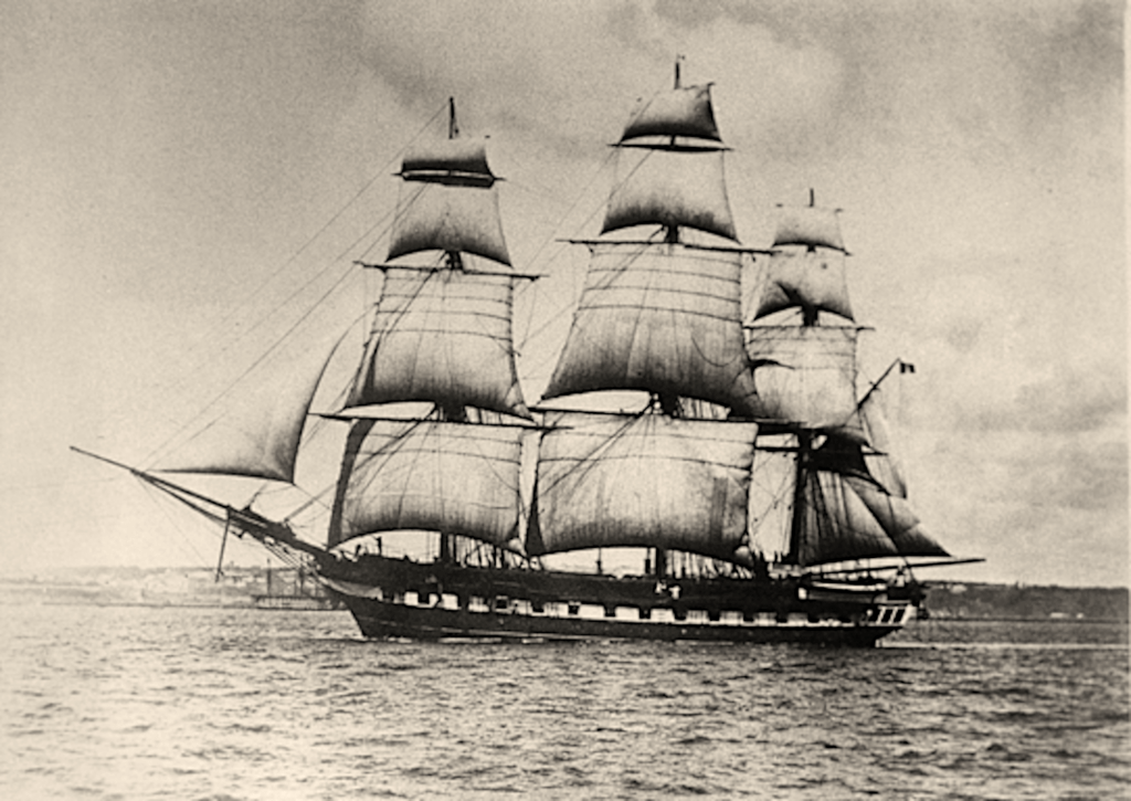 A la suite de la prise de Québec par les Britanniques en 1759 et des derniers combats ne faisant que retarder l’inéluctable chute de la Nouvelle France, le pavillon français disparaît du Saint-Laurent pour près d’un siècle. Il va falloir attendre le Second Empire pour qu’un navire militaire français descende de nouveau le fleuve pour une escale à Québec en 1855. Immense succès populaire, la visite de la corvette la Capricieuse ne connaîtra toutefois pas les suites commerciales escomptées.