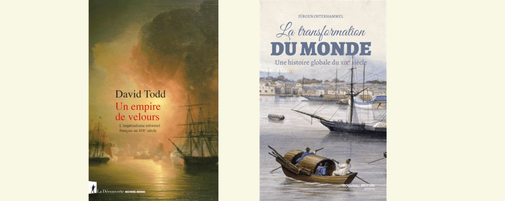 Comprendre les profondes transformations des Marines de guerre et de commerce au XIXe suppose de s’intéresser au contexte de ce siècle extraordinaire. Un empire de velours, l’impérialisme français au XIXe siècle, ouvrage de David Todd publié fin 2022, s’intéresse aux nouvelles formes de l’impérialisme français après la perte du premier empire colonial en Amérique du Nord et au processus de mondialisation au XIXe. Cett étude complète très efficacement l’ouvrage de Jürgen Osterhammel, La transformation du monde, une histoire globale du XIXe siècle, qui offre une vision large de ce siècle, dépassant le cadre européen.
