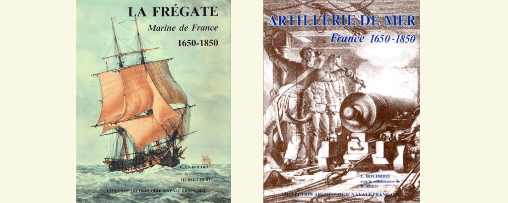 On ne présente plus Jean Boudriot, auteur de l’ouvrage de référence sur le vaisseau de 74 canons en quatre tomes. Les éditions Ancre proposent deux autres de ses ouvrages, illustrant les continuités et les ruptures dans la conception des navires et de leur système d’artillerie de 1650 à 1850 : La frégate, Marine de France 1650-1850 et Artillerie de mer, France 1650-1850.