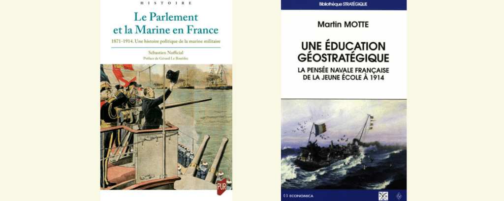 Si vous vous intéressez davantage aux aspects politiques et de stratégie navale, nous vous recommandons le récent ouvrage de Sébastien Nofficial, Le Parlement et la Marine en France. Plus ancien mais une valeur sûre, Une éducation géostratégique, la pensée navale française de la jeune école à 1914 vous plongera dans les réflexions navales de la même époque, et l’investissement dans les flottilles de torpilleurs.