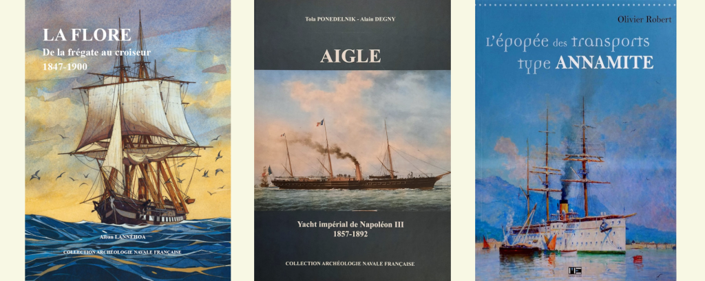 Nous osons vous recommander notre propre ouvrage publié cette année : La Flore, de la frégate au croiseur 1847-1900, retraçant l’histoire de la conception et des campagnes de cette frégate, qui illustrent la bascule d’une Marine à une autre dans la deuxième moitié du XIXe siècle. Egalement aux éditions Ancre, notre ami Alain Degny et le regretté Tola Ponedelnik sont les auteurs de la monographie Aigle, yacht impérial de Napoléon III 1857-1892, qui vous emmènera notamment en Egypte pour l’inauguration du canal de Suez. Un grand classique enfin, L’épopée des transports type Annamite vous emmènera à la fin du XIXe sur les côtes africaines et en Extrême-Orient.