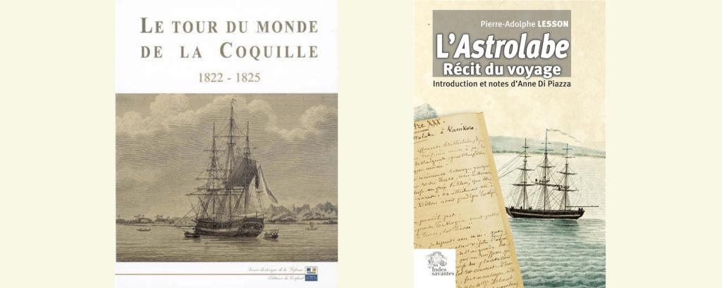 Deux ouvrages retracent l’histoire du même navire sous ses deux noms successifs : Le tour du monde de la Coquille, 1822-1825, puis L’Astrolabe, récit du voyage. Cette gabarre écurie lancée en 1811 a réalisé trois circumnavigations, dont deux sous le commandement de Dumont d’Urville.