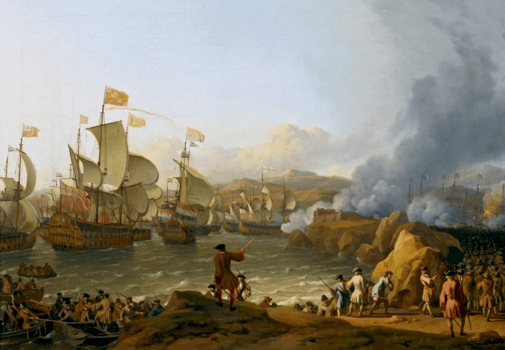 L’Espagne dut résister à cette coalition. Mais elle était à peu près dépourvue de soldats et de marins. Cependant, l’argent ne lui manquait pas. A la condition toutefois que ses galions, chargés de l’or et de l’argent de l’Amérique, entrassent dans ses ports. Or, vers la fin de 1702, elle attendait un riche convoi que la France faisait escorter par une flotte de vingt-trois vaisseaux commandés par l’amiral de Château-Renaud, car les marines coalisées couraient alors l’Atlantique.