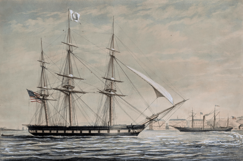 La première étape a été la consultation de Fold3, un site de recherche généalogique documentant spécifiquement les carrières de militaires anglo-saxons. C’est un excellent site, mais malheureusement délicat à utiliser car son moteur de recherche est très complexe. J’ai toutefois obtenu de nombreux résultats pour le nom de Thorburn. J’ai notamment repéré un aspirant Thorburn affecté sur l’USS Susquehanna en 1851-1852, ce qui est vraiment excitant puisqu’à ce moment-là le navire se trouvait dans le Pacifique, se préparant à se rendre au Japon avec le commodore Matthew C. Perry pour négocier le Traité qui ouvrirait le commerce avec l’Amérique. Le nom mentionné était toutefois « E. C. Thorburn », et je n’étais donc pas certaine qu’il s’agisse de la même personne.