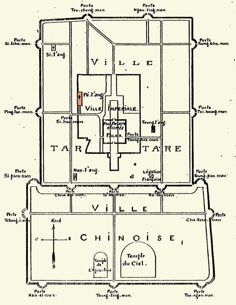 Voici les mesures que j’ai prises, de concert avec Monseigneur Favier, et que je soumets à votre approbation. Pendant le jour, un factionnaire armé se tient à l’entrée principale sud. Pendant la nuit, deux postes de quatre hommes, commandés par des gradés ou des fusiliers brevetés, sont placés l’un à la porterie du sud, l’autre dans le parloir des sœurs, du côté nord. Les hommes se couchent tout équipés, leurs armes à portée de la main. A la première alerte, ils seraient réveillés par des veilleurs chinois, et organiseraient la défense en attendant mon arrivée avec le gros du détachement. J’ai donné aux chefs des postes l’ordre formel, à moins d’impossibilité absolue, de ne pas tirer avant que je n’aie pris le commandement. Les cartouches restent empaquetées. J’espère donc ne pas avoir de fausses alertes ; il est d’ailleurs plus que probable que MM. les Boxeurs vont se tenir tranquilles. Hier et cette nuit, absolument rien de particulier.