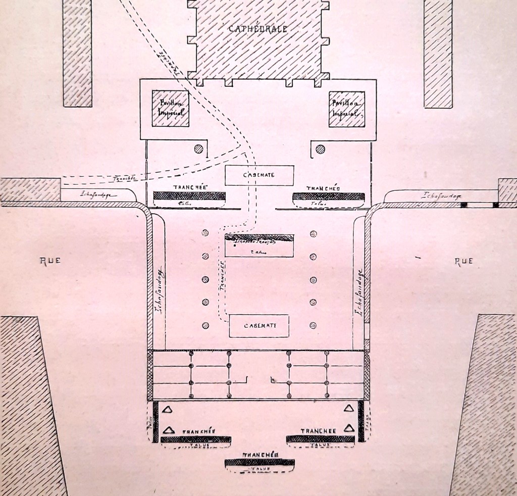 Mardi 26 juin. – Pendant la nuit, fusillade intermittente un peu de tous les côtés assez nourrie par moments. Dans la journée, quelques coups de fusils de rempart et de fusils ordinaires. Vers 3 heures, incendies allumés à l’est, en face du séminaire, au sud-est et au sud-ouest.