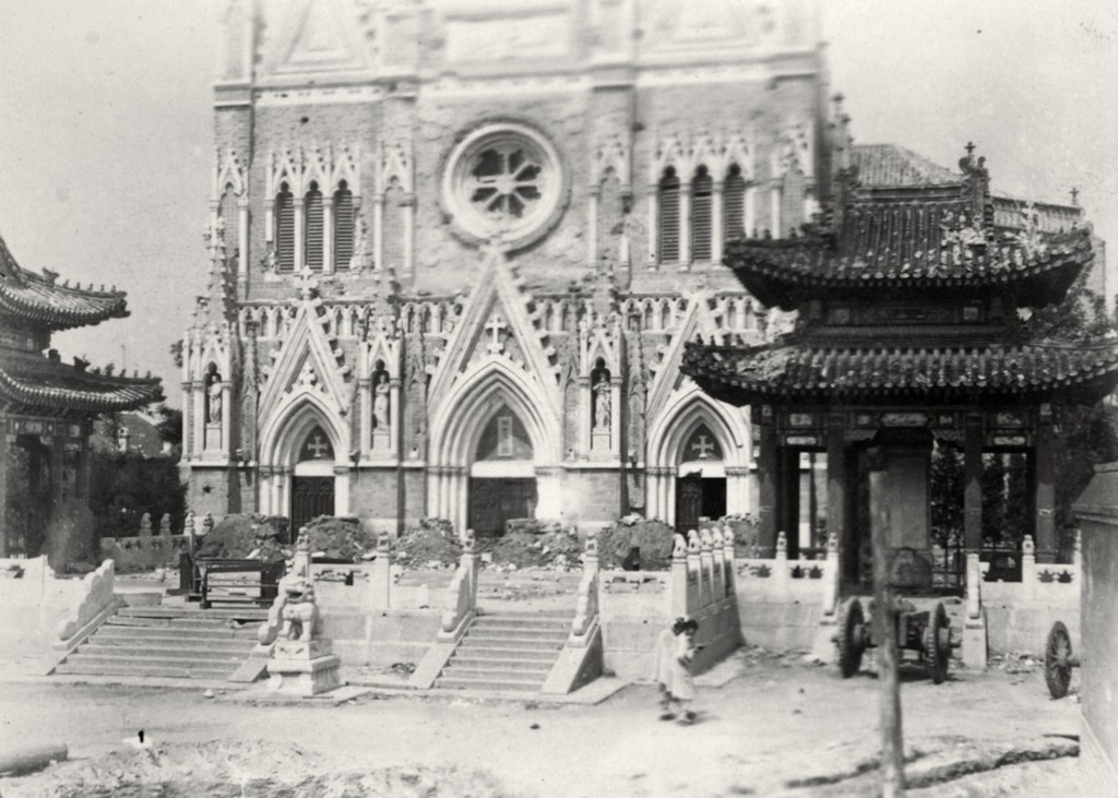 14 juin 1900. – Hier soir à 11 heures, on m’a fait prévenir qu’un immense incendie venait d’éclater du côté de Toung-T’ang, une grande et belle église catholique. Successivement six incendies s’allument dans l’ouest. On voit la flamme s’échapper de l’église du Toung-T’ang ; un crépitement de fusillade déchire l’air, puis tout retombe dans le silence. Je passe la nuit à la porte. Dans la journée, on brûle partout. Nan-T’ang, etc. Le soir, en prévision d’une attaque, tout le monde est à son poste de combat. La nuit est splendide, on attend une attaque ; à la fin quelques alertes, rien.