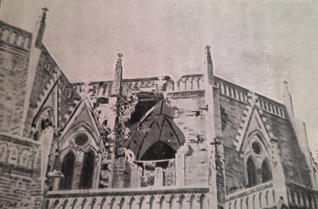 Mercredi 11 juillet. – A 9 heures, Monseigneur Jarlin est blessé à la tête. Vers 1 heure le bombardement recommence ; à 1 heure 5, une forte explosion de mine près de chez les sœurs. Un homme est tué, quelques blessés légèrement. Bombardement de l’est, cesse aussitôt, continue au sud-ouest et au sud. Au sud, boulets de 15cm, forte fusillade. Impossibilité de s’opposer au tir. Toit de la porte éventré. Les hommes à l’abri. Le soir, des chrétiens vont brûler des maisons à l’est, à l’ouest et au sud. J’envoie voir si on travaille à des mines. Surveillance a l’air moins complète. 95 coups de canon.