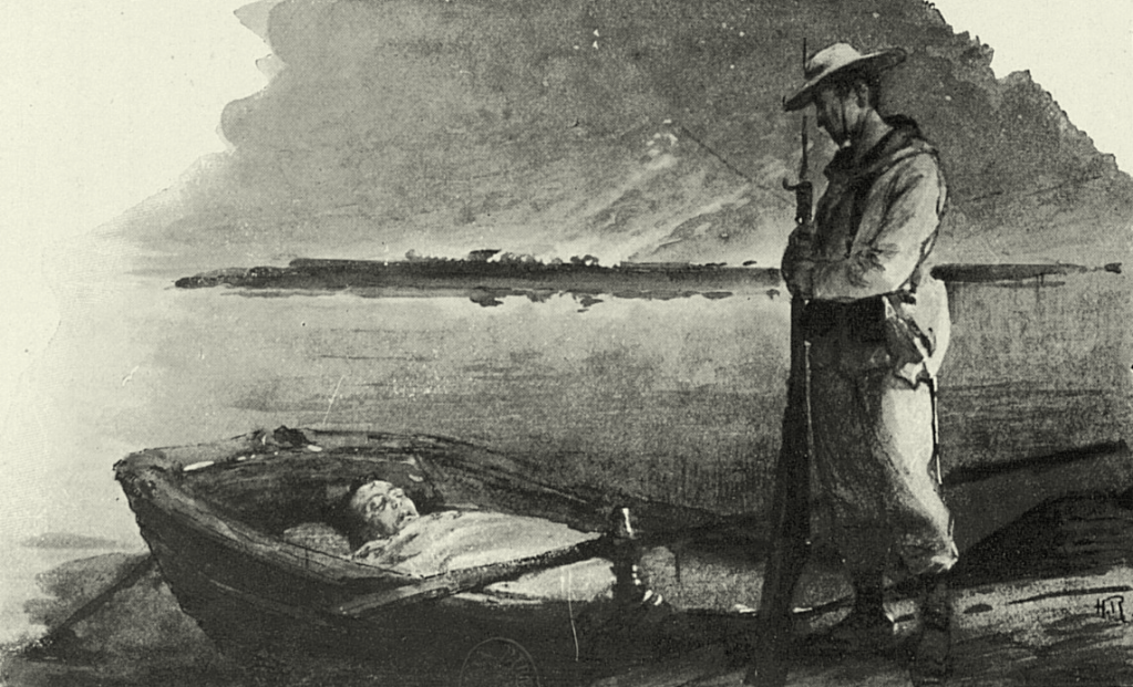 Le lendemain, on fait traverser le canal de Loutaï aux blessés sur des bacs, puis le Peï-Ho est franchi sur un pont de bateaux pour parvenir enfin aux concessions européennes de Tien-Tsin. Corentin Postic et les autres blessés sont conduits à l’hôpital de la concession française.