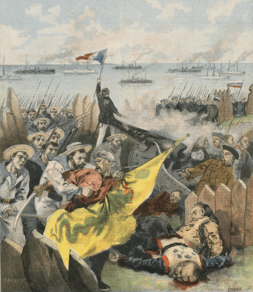 Le Jean-Bart reçoit à la fin de l’année 1897 l’ordre de quitter Brest pour rejoindre l’escadre d’Extrême-Orient. La Chine est déstabilisée par une série d’événements qui ont mis à mal la dynastie Qing au fil du XIXe siècle : les guerres de l’opium, la révolte des Taiping, l’intervention française en Cochinchine, puis les opérations de l’amiral Courbet qui réduisirent à néant deux flottes régionales chinoises à Fuzhou puis à Shipu. Enfin les forces japonaises, qui ont déjà conduit une expédition à Taïwan en 1873, interviennent en Corée et annihilent la flotte japonaise en 1894. C’est pour la Chine l’humiliation suprême face au rival séculaire, amplifiant les mouvements de révolte internes. Après les Taiping, c’est le mouvement des « Poings de la justice et de la concorde », que l’on appelle Révolte des « Boxeurs » en Occident, qui menace le pouvoir impérial et prend pour cible les Européens.