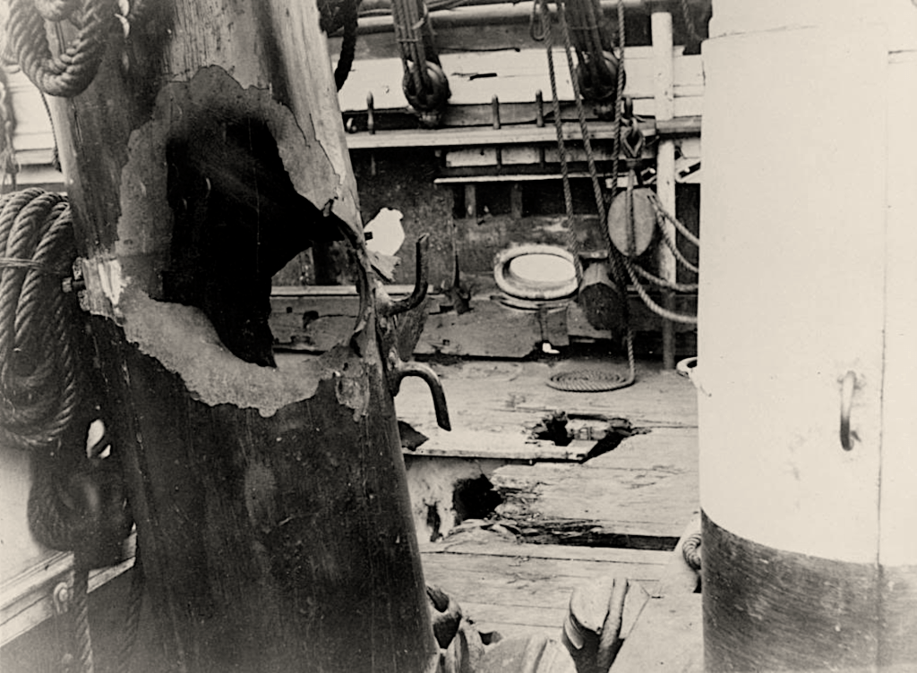 Le Huascar, sans perdre l’espérance de fuir au nord, ouvrit le feu à neuf heures et quart du matin, et à une distance de plus de trois kilomètres tout en continuant à se retirer. Le Cochrane, de son côté, s’avançait silencieux et imperturbable, et ce fut seulement après avoir considérablement raccourci la distance qui les séparait qu’il tira les premiers coups de canon contre le navire ennemi. Jamais les feux d’artillerie n’avaient été dirigés avec plus de précision et d’assurance. Les premiers boulets du Cochrane mirent en pièces la tour blindée du Huascar, tuant et mutilant horriblement le commandant Grau, qui s’y tenait pour diriger la manœuvre. Deux officiers qui prirent ensuite le commandement tombèrent l’un après l’autre. Pourtant le combat se soutint avec la plus grande énergie pendant plus d’une heure. Il y eut un moment où le vaisseau péruvien amena son pavillon, et l’on crut le combat terminé. Les feux se suspendirent pendant quelques minutes, mais le monitor hissa de nouveau le pavillon, en recommençant la retraite. Immédiatement, le commandant Latorre ordonna de reprendre le feu en diminuant encore la distance. Les deux navires manœuvrèrent à plusieurs reprises pour chercher à se percer avec leur éperon, mais sans pouvoir se toucher.