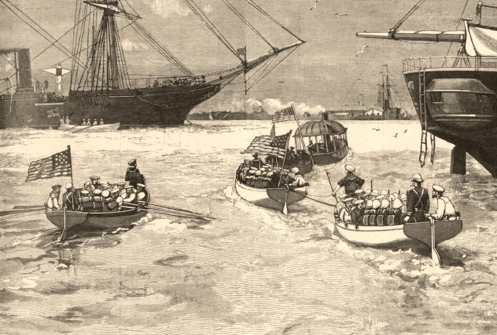 Lorsqu’une insurrection menée par Pedro Prestán (1852-1885) prit le 10 mars 1885 possession de la ville de Colón, marquant l’entrée nord du projet de canal, une escadre de l’US Navy fut rapidement dépêchée sur place, sous le commandement de l’amiral James Edward Jouett (1826-1902). La pression exercée par le déploiement américain expliqua probablement le refus opposé par la direction des travaux du canal à la proposition d’appui formulée par le capitaine de vaisseau d’Abel de Libran (1833-1901), commandant du croiseur Flore également envoyé devant Colón. Ce furent uniquement les troupes américaines débarquées par l’USS Galena et l’USS Tennessee qui se chargèrent d’évacuer les ressortissants américains et européens. Le contingent américain sécurisa les locaux de la compagnie du Pacific Mail mais laissa les intérêts français sans protection. Amer, le contre-amiral Henri Lacombe (1825-1903) ne put que constater l’impuissance de la division navale française de l’Atlantique Nord dont il avait le commandement, et l’influence grandissante des Etats-Unis dans la région après cette démonstration des ambitions de l’US Navy.