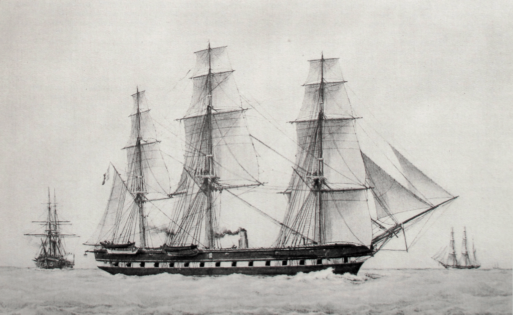 Ce fut en 1843, peu de temps après les essais que nous venons de voir l’Archimède effectuer en Angleterre, qu’eut lieu, en France, la première application de l’hélice à un bâtiment à vapeur. On fit choix d’un type d’aviso, dont la construction fut confiée à l’habile M. Normand, du Havre, et qui reçut à son berceau le nom de Napoléon ; il se nomme aujourd’hui Le Corse, depuis que le magnifique vaisseau à vapeur que tout le monde connaît, s’est élancé en souverain sur les mers après avoir ravi son nom au petit aviso. Mû par une machine de 220 chevaux, ce bâtiment à vapeur donna, dès le début, les résultats les plus satisfaisants et n’atteignit pas moins de dix nœuds à l’heure ; à la voile, sa marche était encore plus brillante. Il fit les essais de dix hélices différentes.