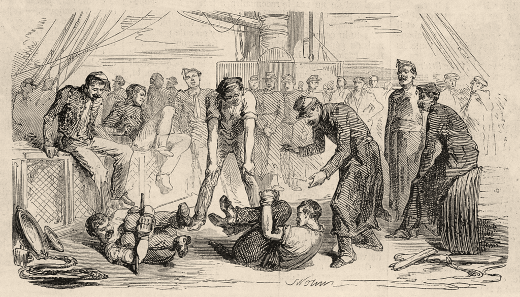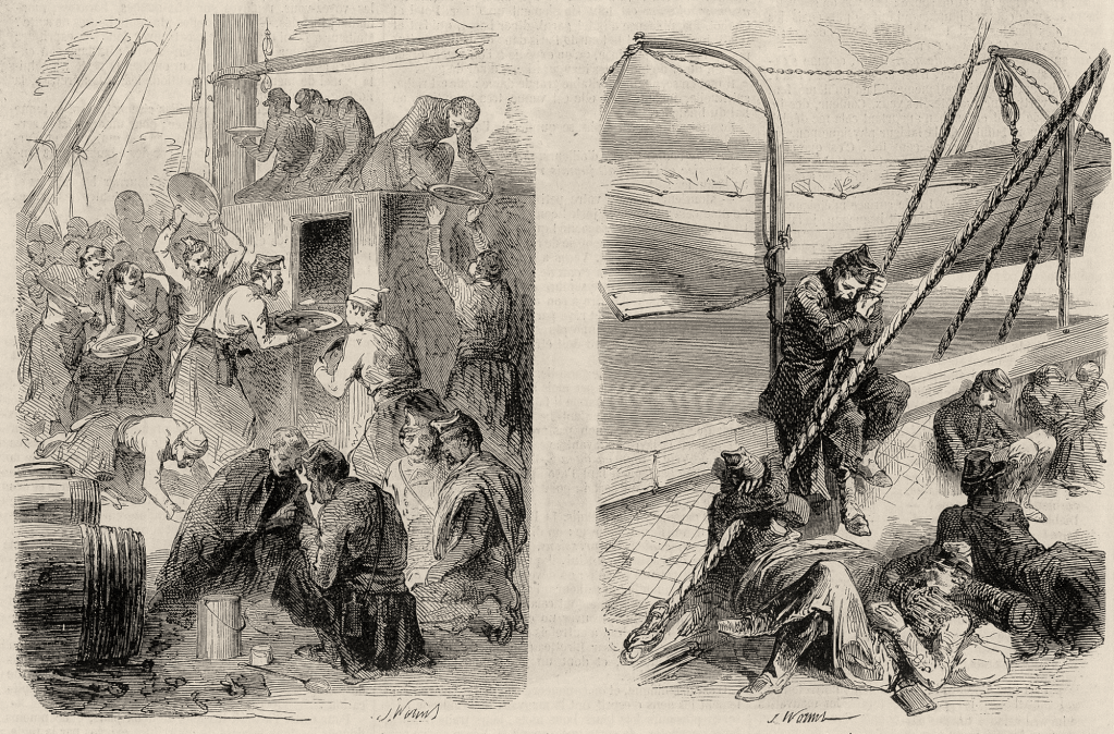 Embarqué sur une frégate à roues de la Marine impériale à destination de la mer Noire en 1854, le peintre Jean-Baptiste Henri Durand-Brager nous livre un récit du quotidien des soldats embarqués pour la Crimée. Nous vous restituons ce récit, publié à l’origine dans les colonnes du journal L’Illustration.